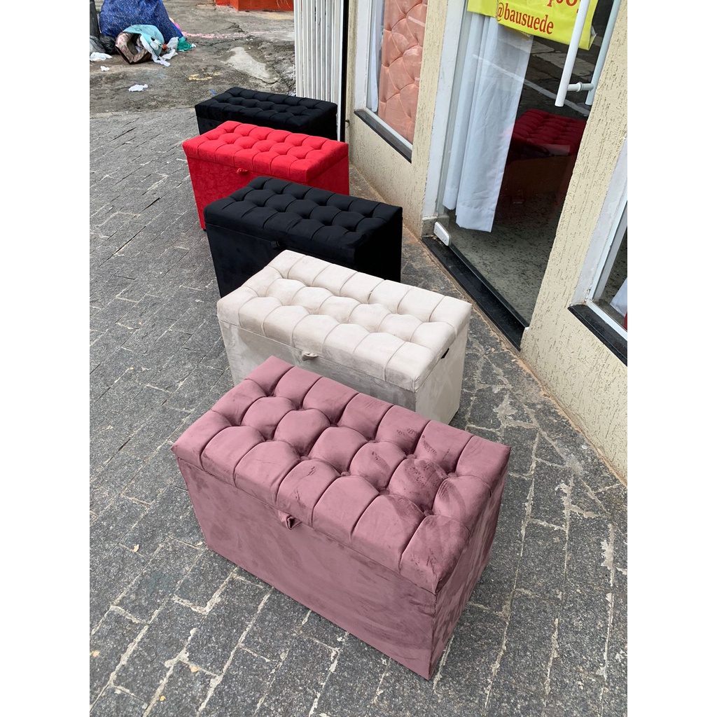 Puff Baú Decorativo Estofado 68 cm 100% MDF