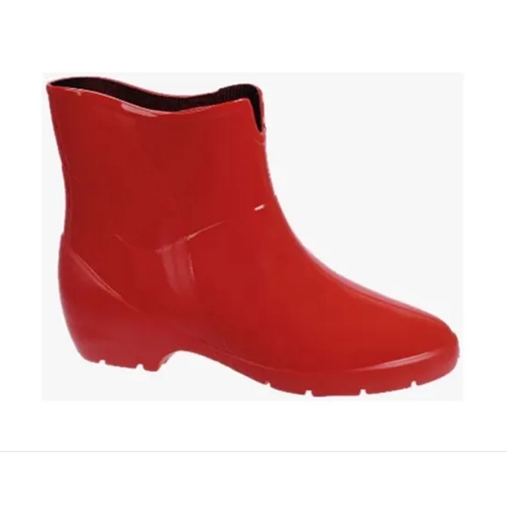 Galocha Cano Curto Vermelha Borracha Pat Feminina Bota Limpeza Chuva