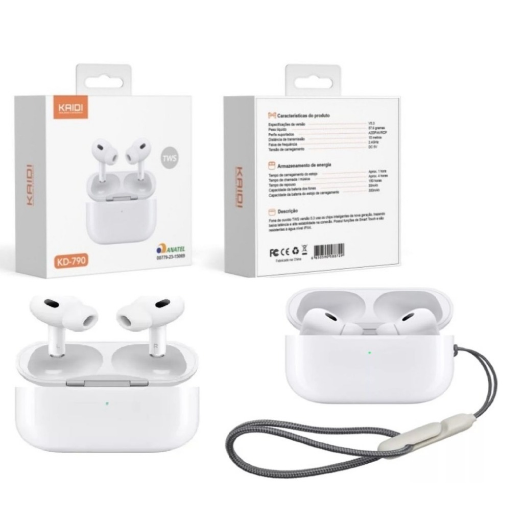Fone De Ouvido Sem Fio Bluetooth Para Iphone e Android Original Kaidi TWS Smart Touch KD 790 Envio Imediato
