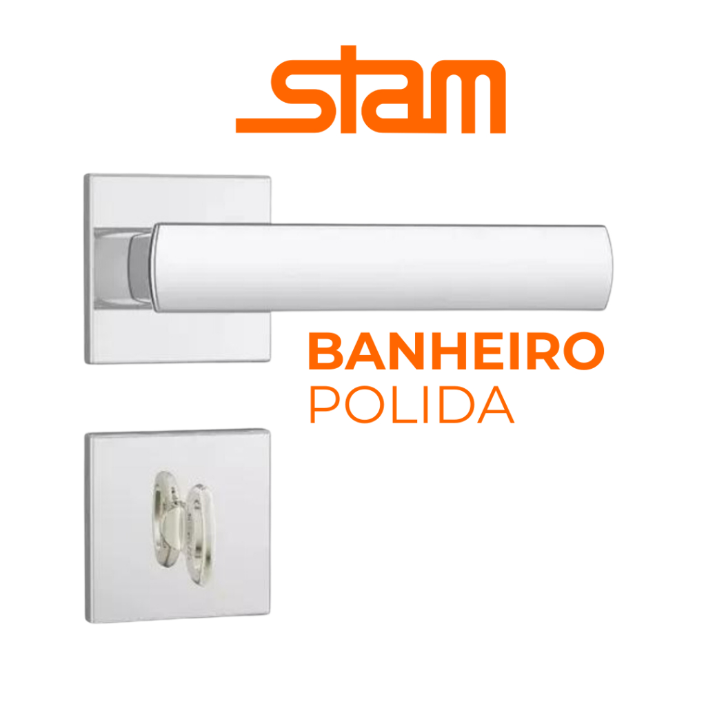Fechadura Porta de Banheiro Stam 823/21 Roseta Quadrada Inox Porta de Madeira