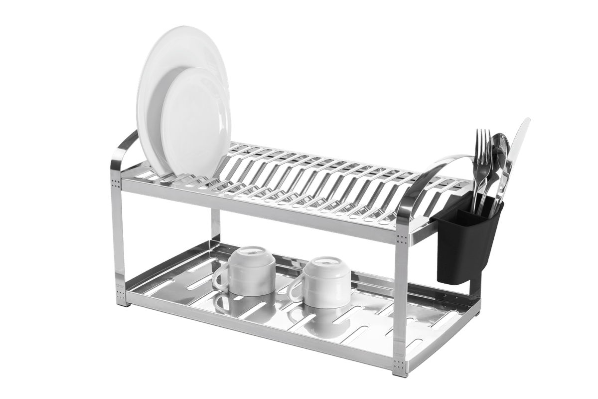Escorredor de Louças Brinox 20 pratos 2 Andares Aço Inoxidável Polido e Escorredor de Talheres - Linha Suprema - Preto