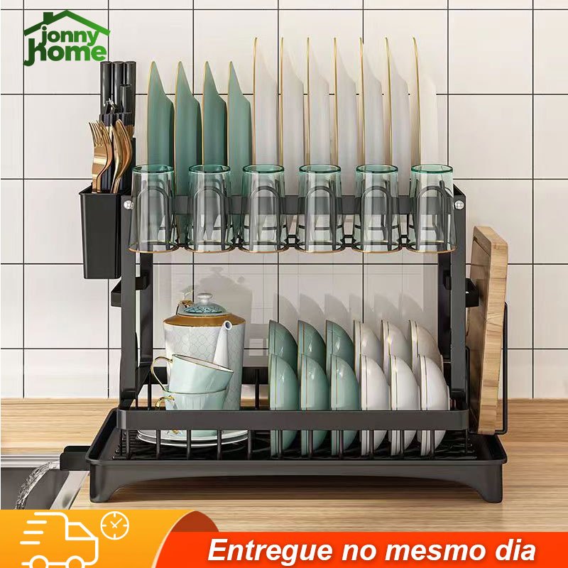 Escorredor De Louças 12 Pratos Organizador Preto Aço Inoxidável Rack Cozinha Pia 2 Andares Cozinha Suspensa