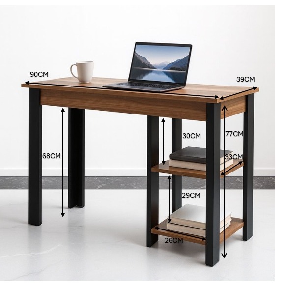 QUEIMA DE ESTOQUE - Escrivaninha Industrial 90cm para Home Office com 2 Prateleiras