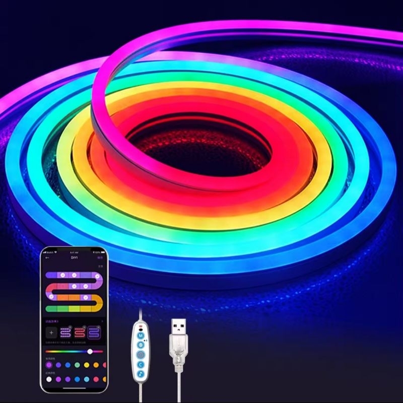 Neon led luz de tira silicone luzes com sincronização bluetooth fita RGB
