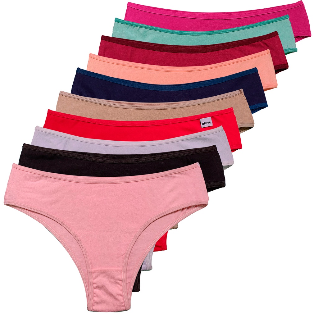 Kit com 10 calcinhas femininas em microfibra ou algodão