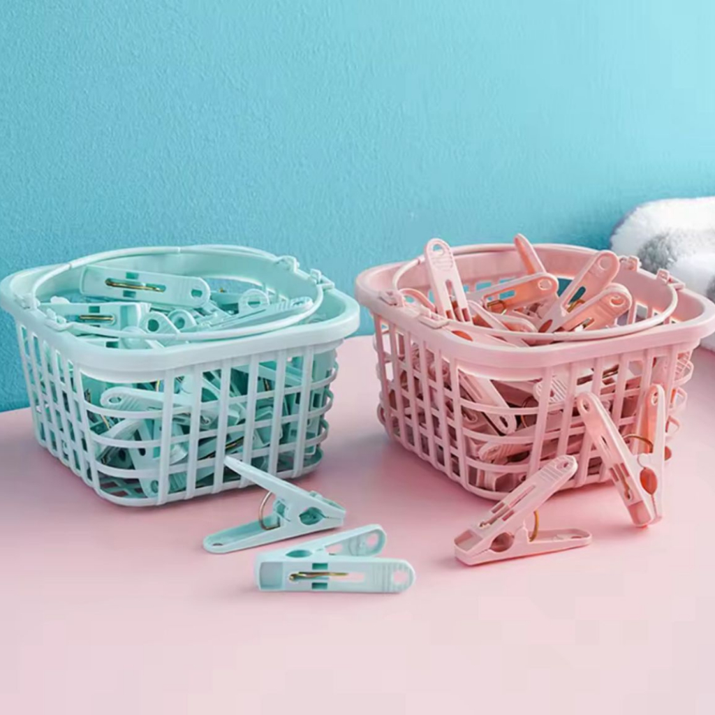 Kit Cestinho Com 60 Prendedores Pregadores de Roupas Lavanderia Varal
