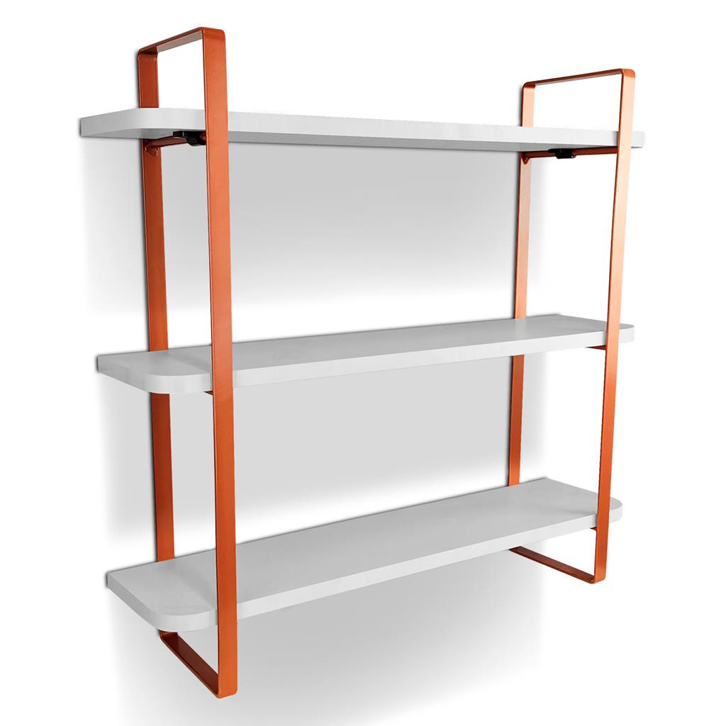 Prateleira Tripla Nicho Hone Modelo Industrial Decoracao Casa 60x15 Cobre/Branca