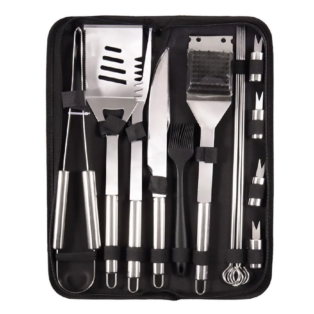 Kit Churrasco Com 15 Peças De Aço Inoxidavel Para Churrasqueiro Profissional