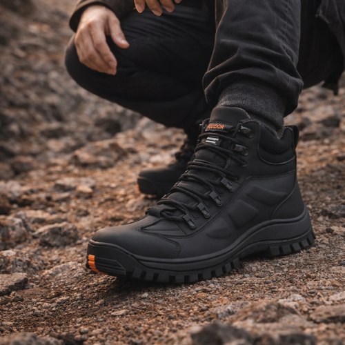 Bota coturno de segurança em couro preta com biqueira e solado macio com CA