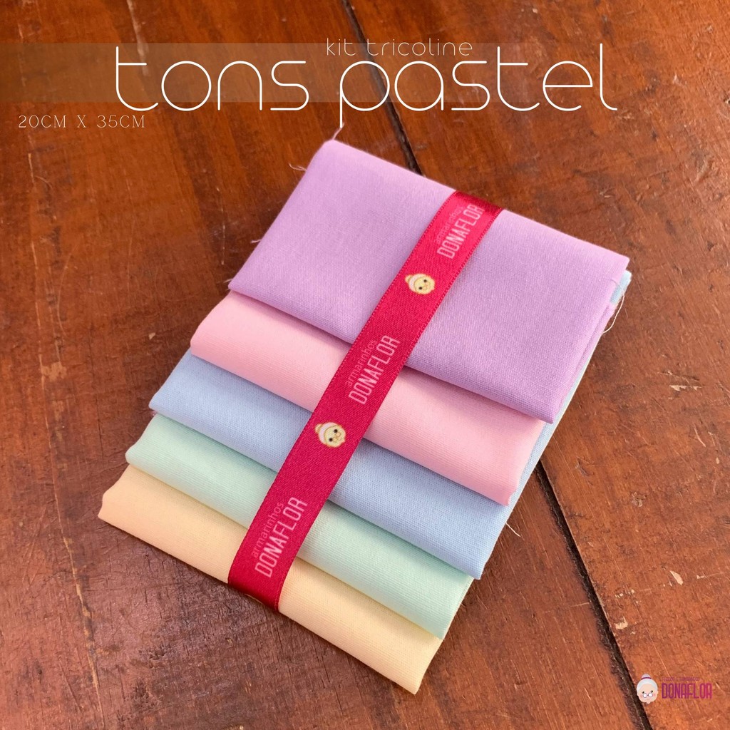 Kit 5tecidos Tricoline Tons Pastel 100% ALG - Medida 20cm x 35cm cada
