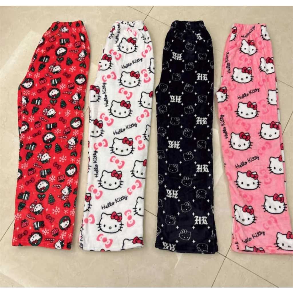Calça Pijama Hello Kitty Peluciada Sanrio Pelúcia Kawaii Harajuku