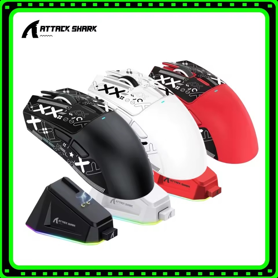Novo Mouse Gamer Sem Fio Leve Attack Shark X11 22000DPI RGB Base Carregamento Tri-Mode-2.4G/USB-C/BT Custo Benefício