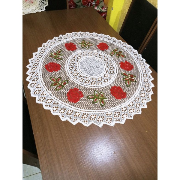 TOALHA DE MESA REDONDA RENDA PINTADA 80 X 80 CM ( Fibra de côco )