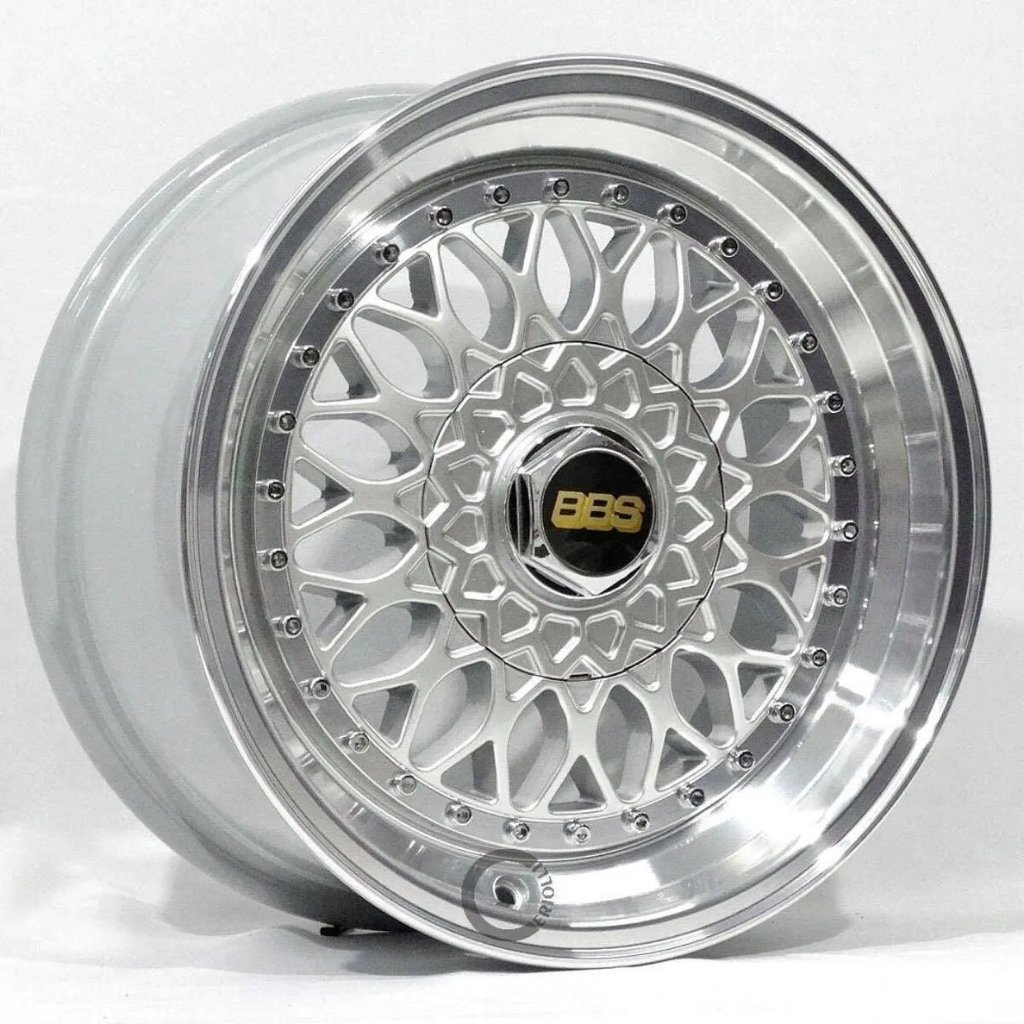 Kit 4 Rodas Bbs Rs Aro 15 Tala 7 4x100/4x108 Borda Gts Prata Diamantada Bicos de Brinde M17