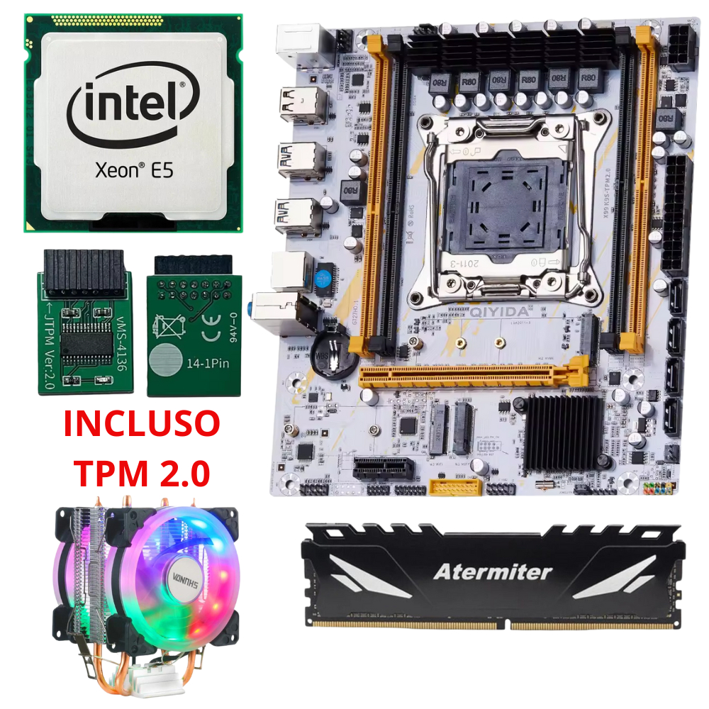 Placa Mãe Qiyida + Xeon 2680 v4 TPM 2.0 Kit Upgrade X99