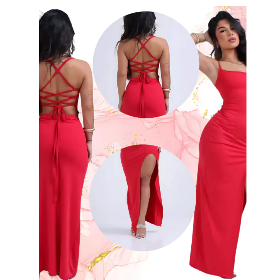 Vestido FEMENINO Longo Suplex Fenda na frente COM ALÇAS TRANÇADAS NAS COSTAS CONFORTAVEL+ CLASSICO