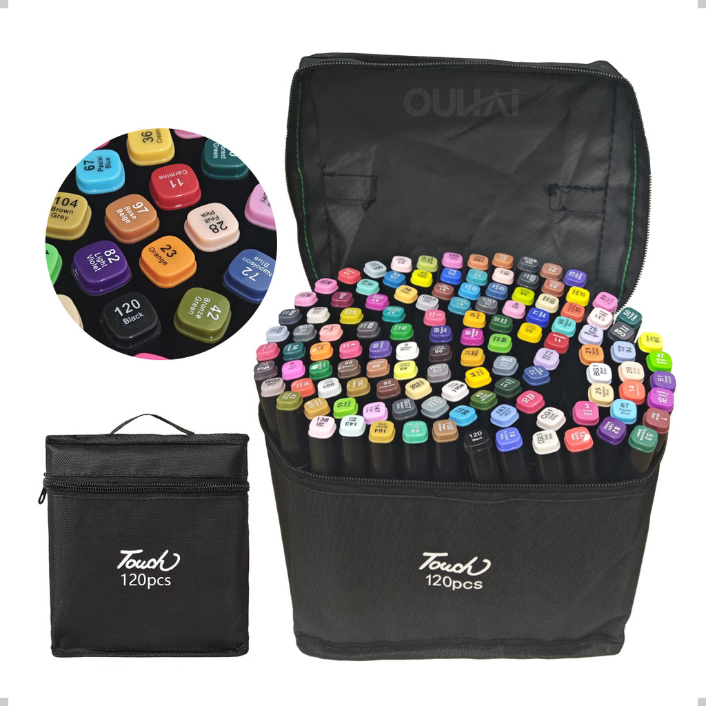 24/36/48/60/80/100/120 Cores Caneta Marcadora Com Ponta Dupla Preto/Pintura De Arte