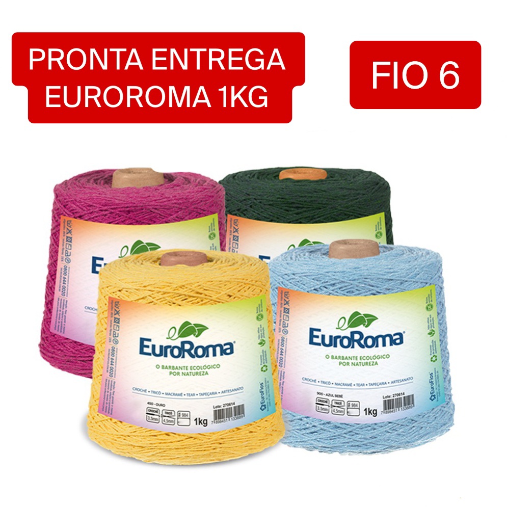 Barbante EuroRoma Fio 6 Crochê 1kg 1016m Cores Lindas