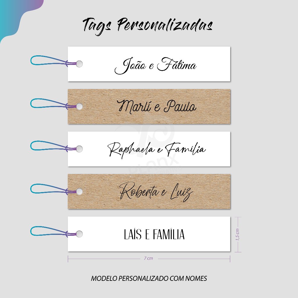 KIT 50 Tags com Nomes dos Convidados | 7x1,5cm | BRANCA OU KRAFT | Tag Nominal Convidado | PERSONALIZAMOS COM SUA LISTA