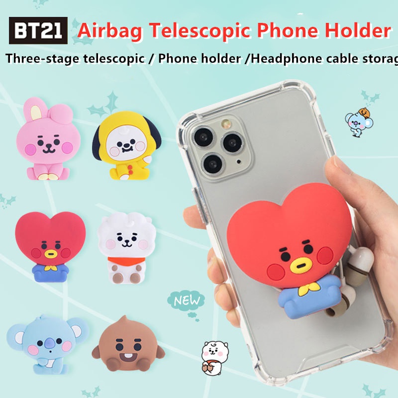 KPOP BTS BT21 Suporte De Telefone Móvel Fofo De Três Estágios Airbag Telescópico Fone De Ouvido Armazenamento De Cabos