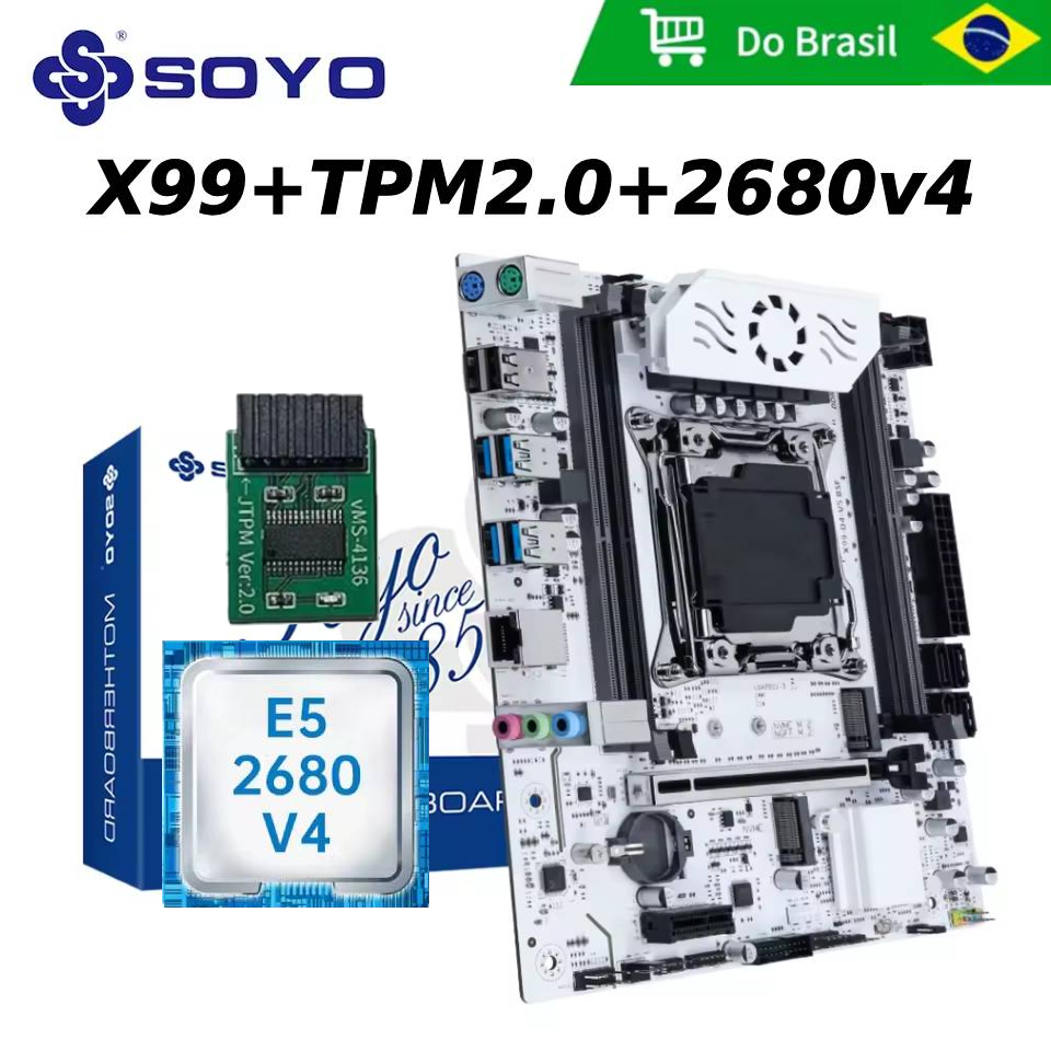KIT SOYO PREMIERE X99 PLACA MÃE + TPM 2.0 + XEON 2680V4 NVME 3.0 SUPORTA DDR4 CHIP C612