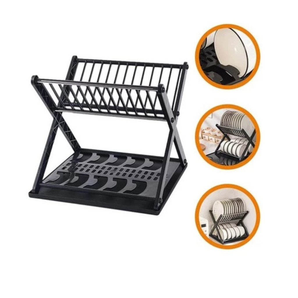 Escorredor de Louça Veneza 2 Andares para Xícara Prato e Talheres Preto Fix Utilidades