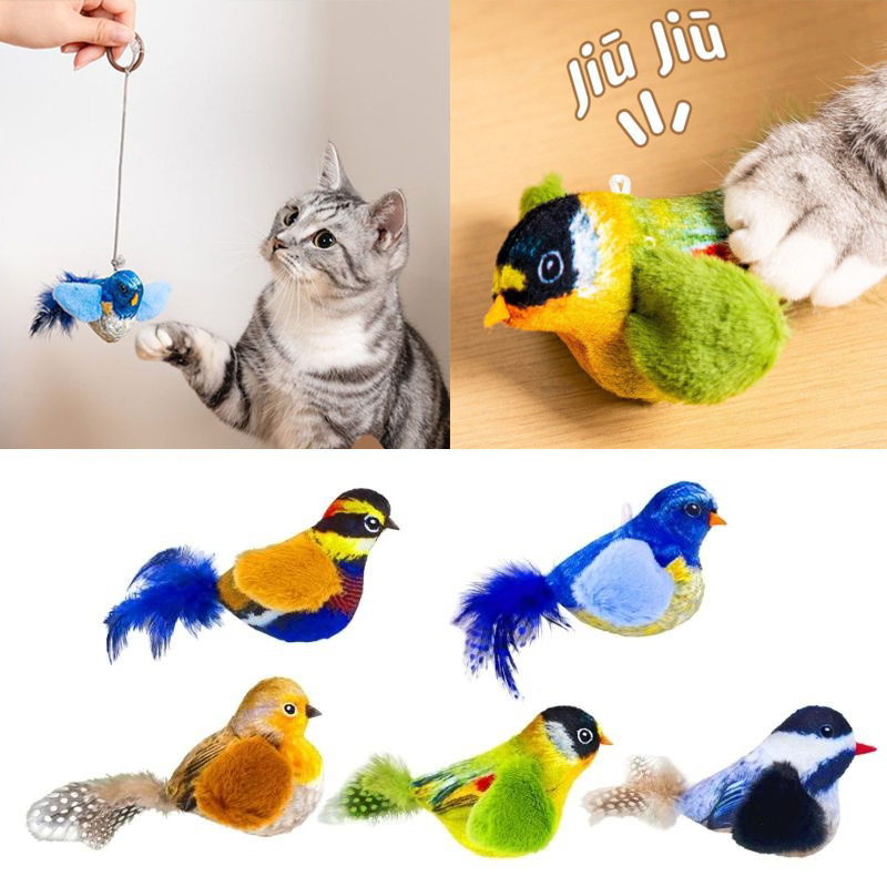 Pássaro de Pelúcia com Som Realista para Gatos Brinquedo Animado Interativo GABISHOP
