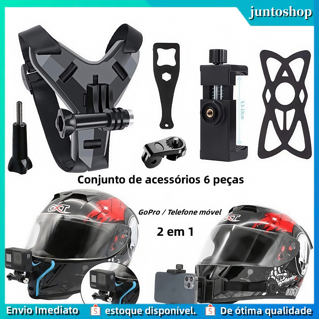 Suporte Para Capacete Câmera De Ação E Queixo Celular Gopro Sjcam