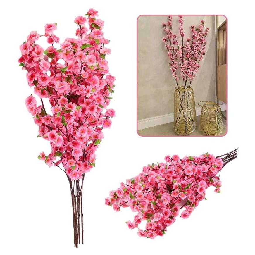 Kit Com 10 Hastes Galhos de Flor Pessegueiro Grande Artificial 120cm Flors De Cerejeira RZF023
