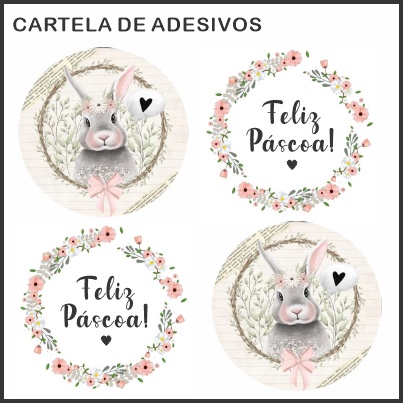 Cartela 100 Adesivos SORTIDAS Etiqueta Feliz Páscoa Cliente 4X4 autocolantes