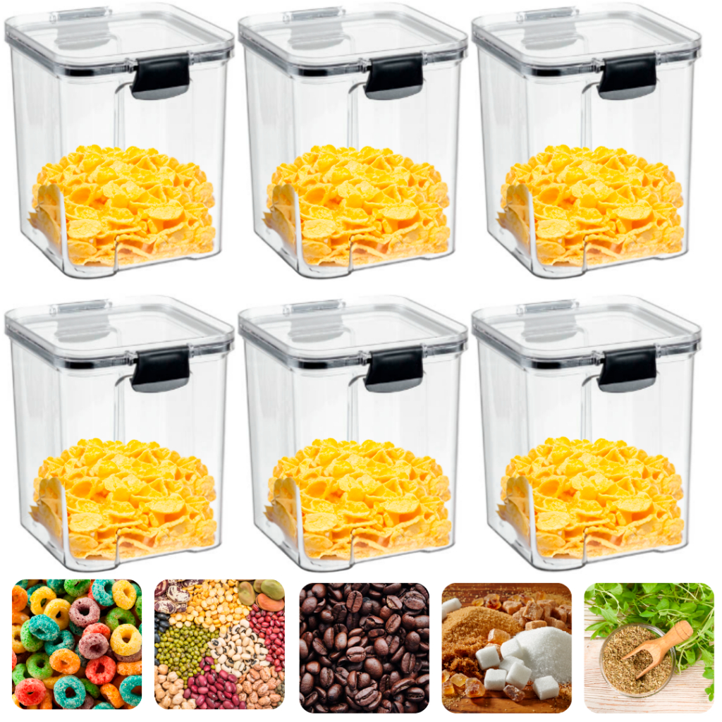 Kit 6 Potes Herméticos 1L Com Trava Reforçada 100% Vedado (ARROZ, FEIJÃO, CAFÉ AÇÚCAR, MACARRÃO, BOLACHA)