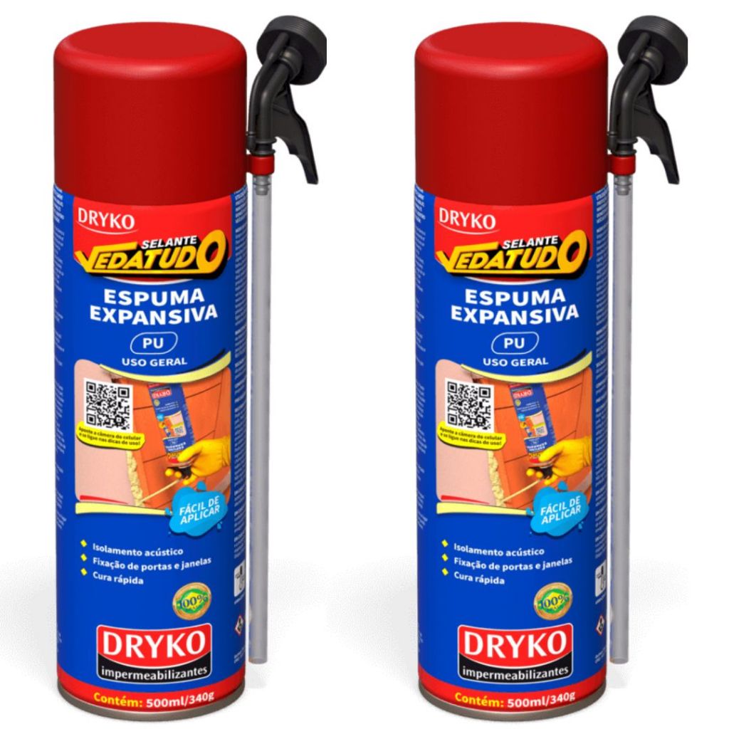 Kit 2 Espuma Expansiva 500ml Selante Isolamento Dryko Vedatudo