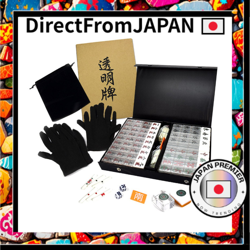【Direct from japan】JUST style【Pecas de Mahjong Transparentes】(Saco de Cegueira + Conjunto de Luvas Pretas para 4