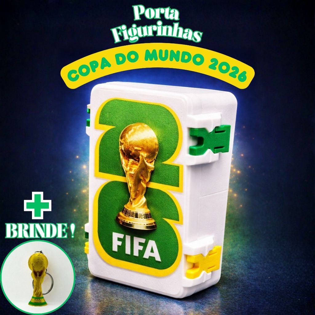 Caixa Porta Figurinha Copa do Mundo 2026 + BRINDE!! PERSONALIZE COM SEU NOME! ÚNICA ANTI-EMBARALHAMENTO
