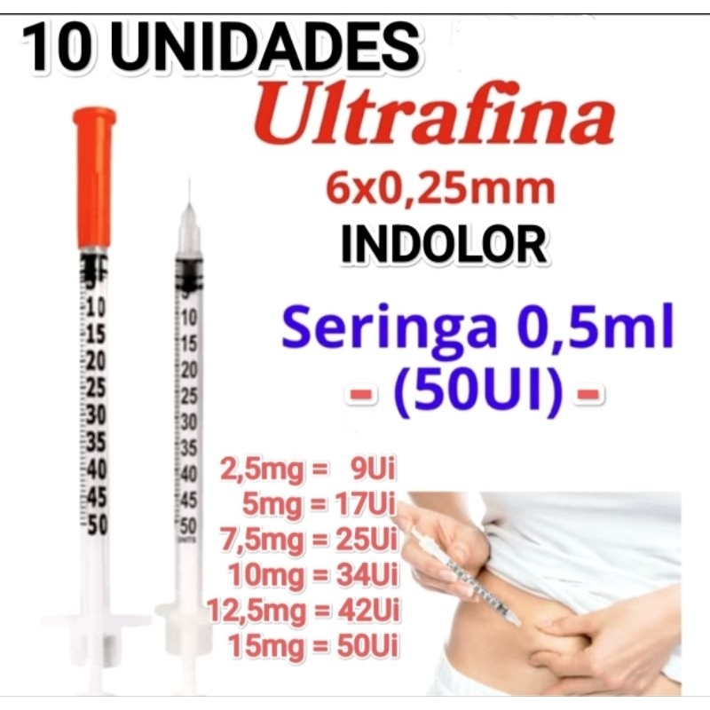Seringa Insulina 0,5ml 6x0,25mm 31G Agulha Fixa KIT COM 10 UNIDADES !