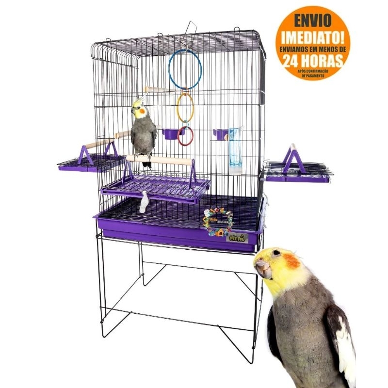Gaiola viveiro triplex para calopsita e passaros agapornis papagaio grande espaçoso completo