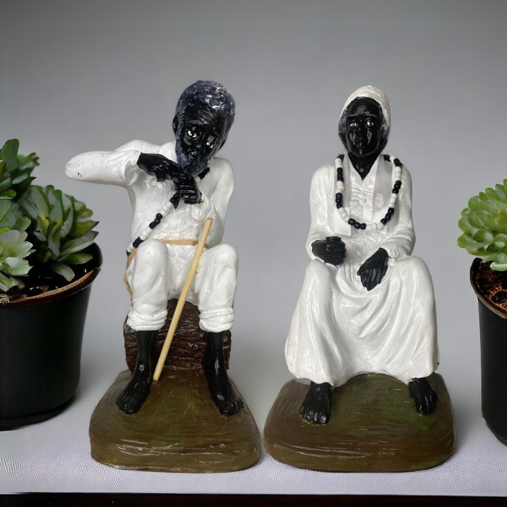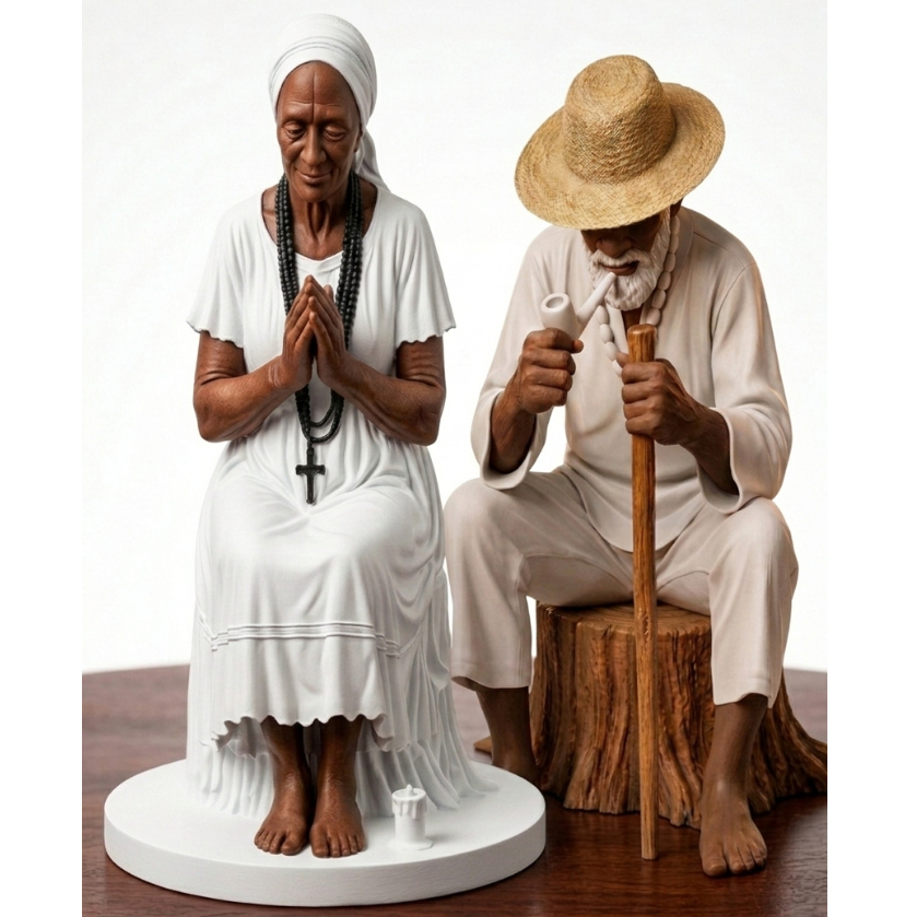Casal Preto Velho em Resina 20cm e 19cm – Imagem Religiosa Umbanda para Altar e Decoração