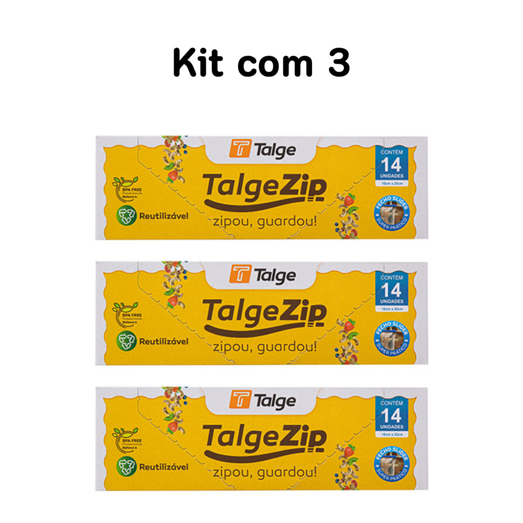 Kit com 3 Saco Zip Slider 18x20cm com 14 sacos Talge