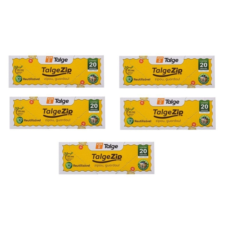 Kit 100 Saco Zip Hermético Fecho Slider 14,9x16,5cm C/20UN – TALGE