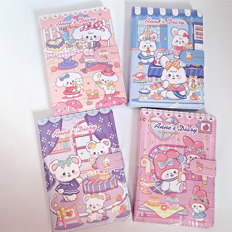 Caderno Kawaii Bichinhos Fofo e Folhas Decorativas com Fecho Magnético