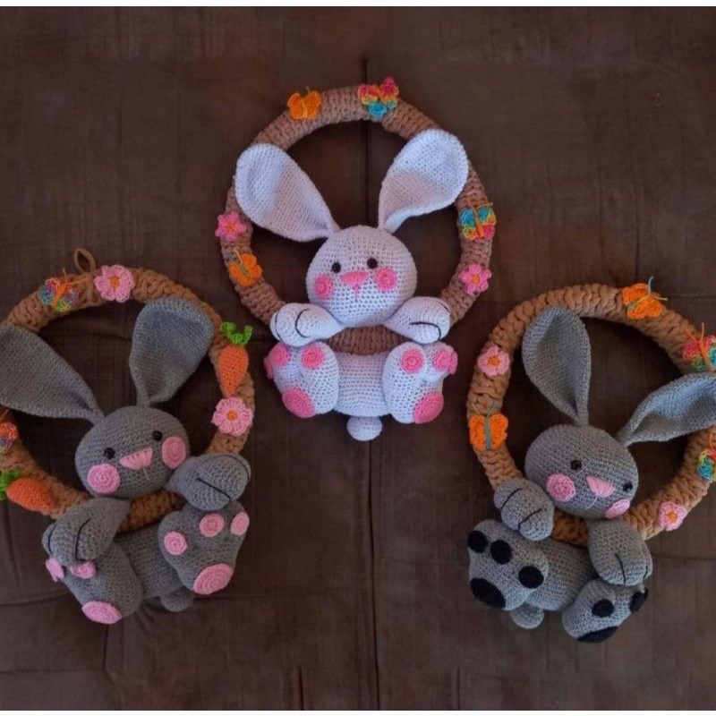 GUIRLANDA DE PÁSCOA AMIGURUMI EM CROCHÊ DECORAÇÃO FELIZ PÁSCOA COELHO