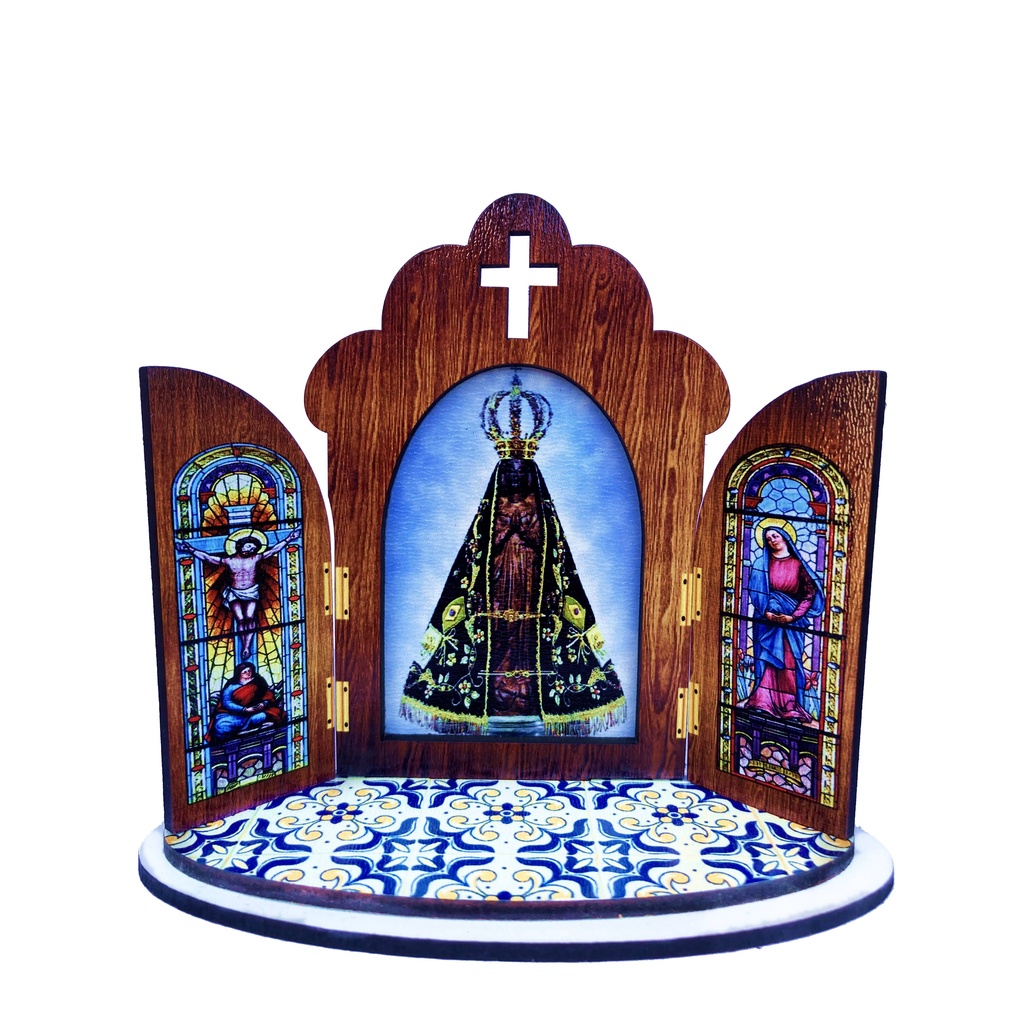 Capela Portuguesa Oratória em madeira MDF + Nossa Senhora Aparecida com Dupla Facei