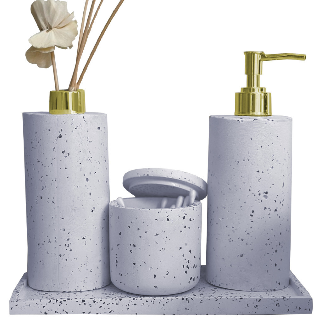 Kit Bridgetown para Lavabo ou banheiro em técnica granilite terrazzo ou marmorizado com saboneteira líquida difusor de ambiente vaso sabonete
