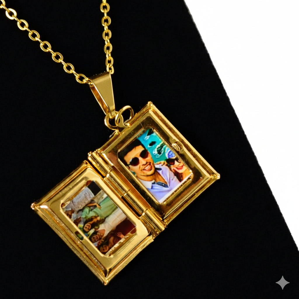 Colar Relicário Feminino para 2 Fotos com Pingente + Video