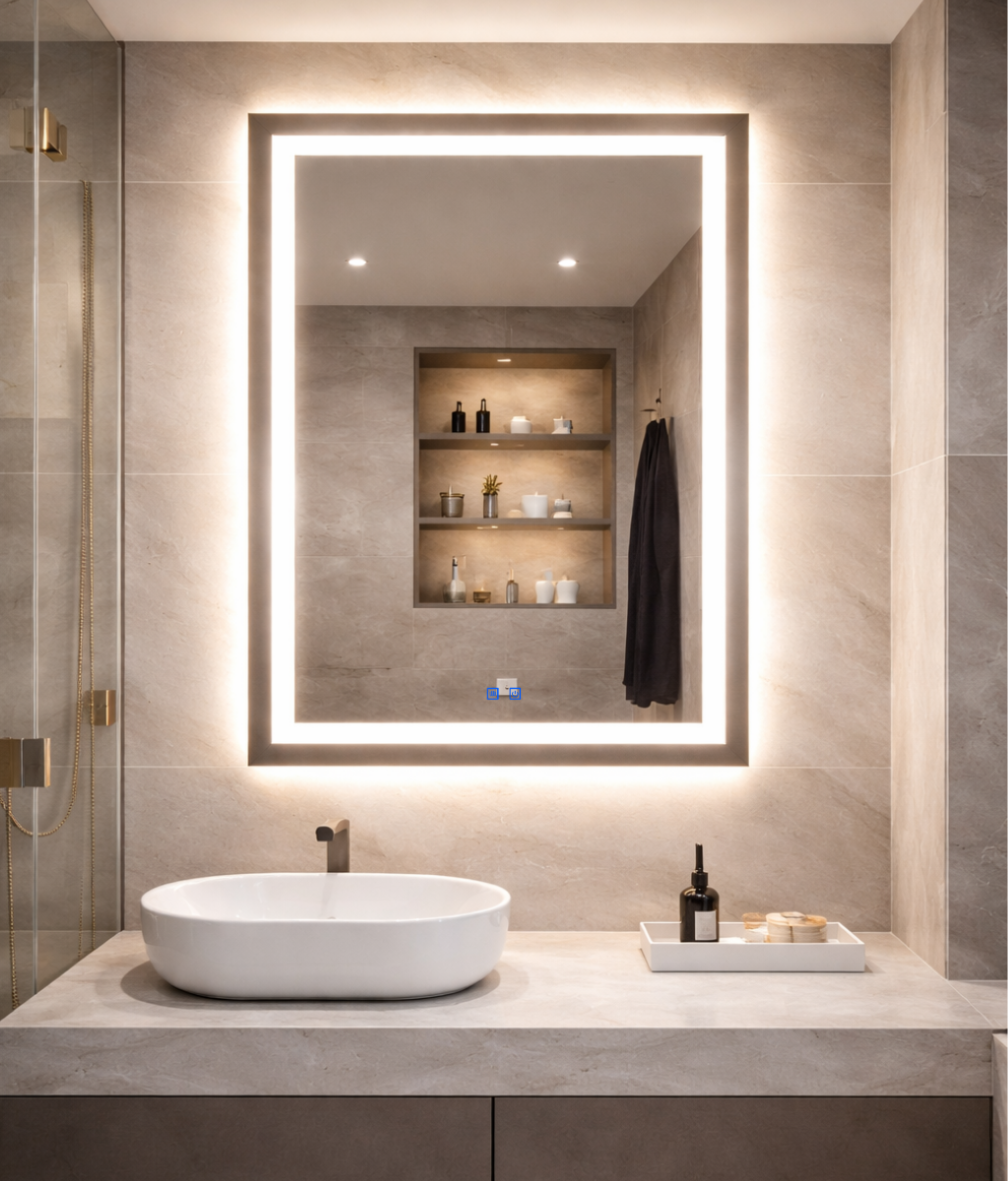 Espelho Led 3 Cores Banheiro 80x60cm com Desembacador Touch Inteligente - Design Organico de Luxo