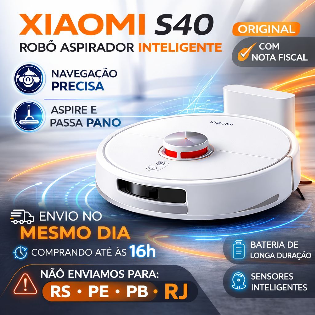 Robô Aspirador Xiaomi S40 | 10.000 PA 70W Bivolt | Laser LDS Original Lacrado Envio Todo Brasil + NF