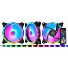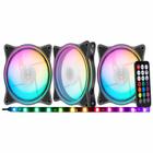 Kit Fan Com 3 Coolers Argb Ritmico Aaja K-mex Rainbow Com Fita Controle e Controladora