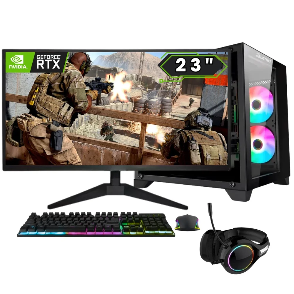 PC Gamer Completo 2eletro Fps Intel Core i5 9400f, 16gb Ddr4, Geforce RTX 3060 12gb, SSD 1TB, Fonte 600w, Monitor 23"full Hd 75hz, Kit Gamer Com Headset - Pg2e-0123fp
