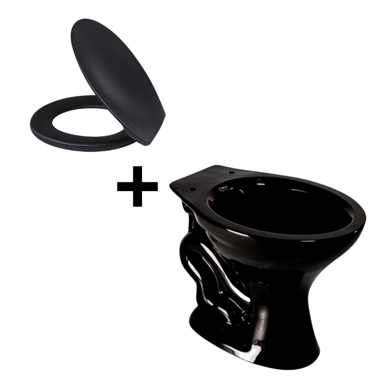 Kit Bacia Convencional Assento Pp Soft Close Anel De Vedação Com Guia Tubo De Ligação E Parafusos De Fixação Preto Etna Icasa