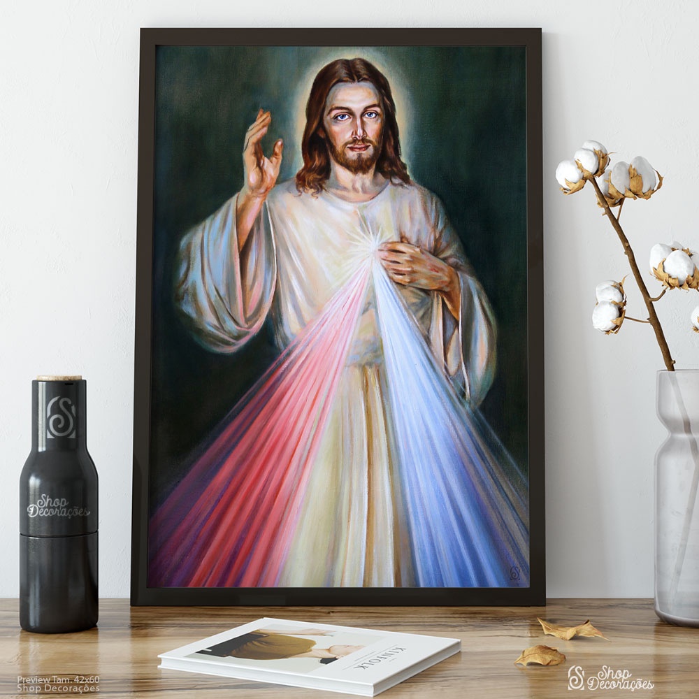 Quadro Decorativo Jesus Cristo Misericordioso Católico Evangélico Cristão Religioso Pintura Moldura Preta ou Branca Quarto Sala Casa A4 A3 A2 A1 Grande Médio Pequeno Enorme Parede Shop Decorações 337